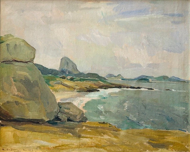 Theodoro de Bona, óleo sobre tela, 60 x 73 cm , datado 1963, rio de Janeiro, pão de açúcar ao fundo